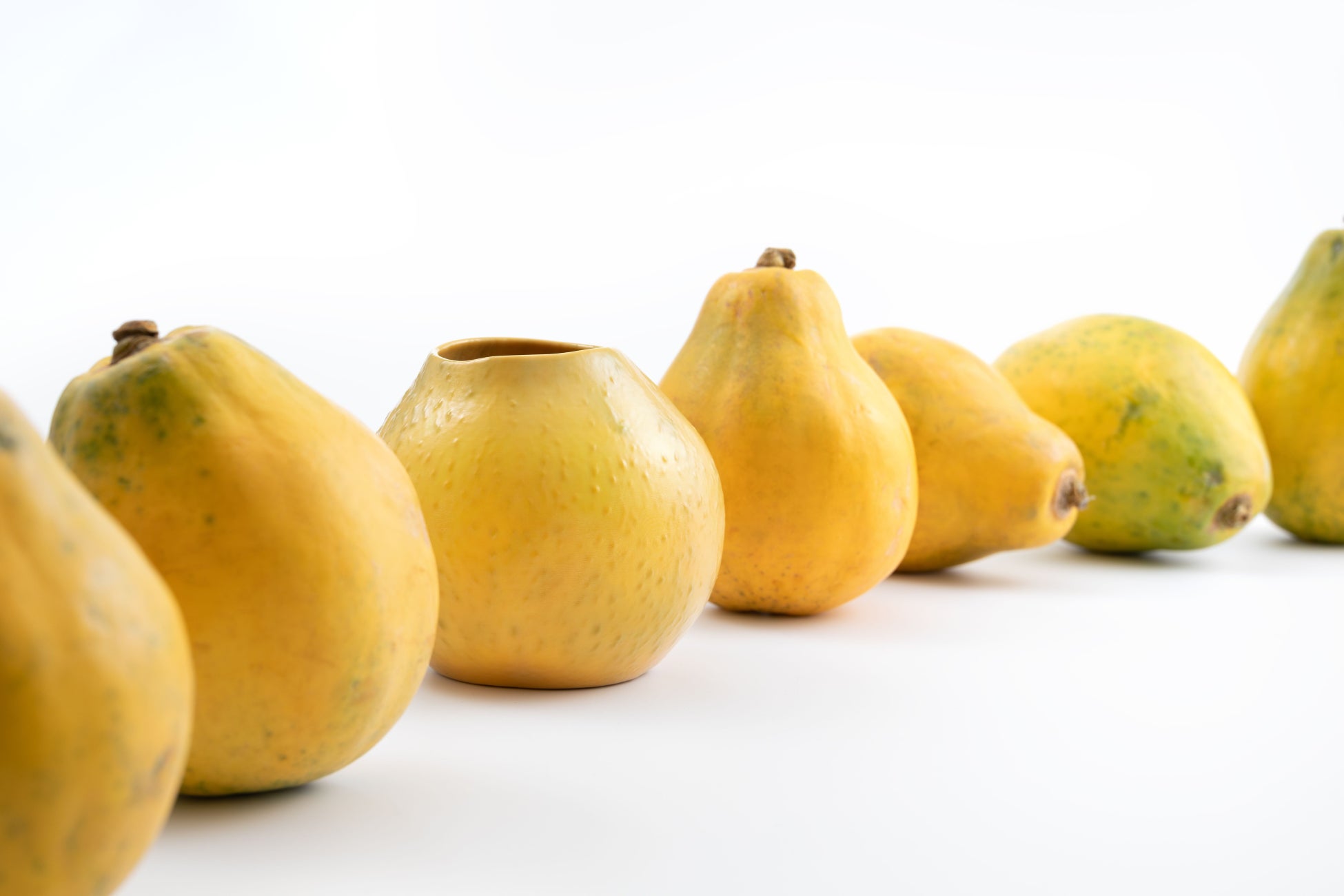 ※展示する器の一例。パパイア(上)、ブロッコリー(下)の画像をそれぞれmitate AIが見立てた。