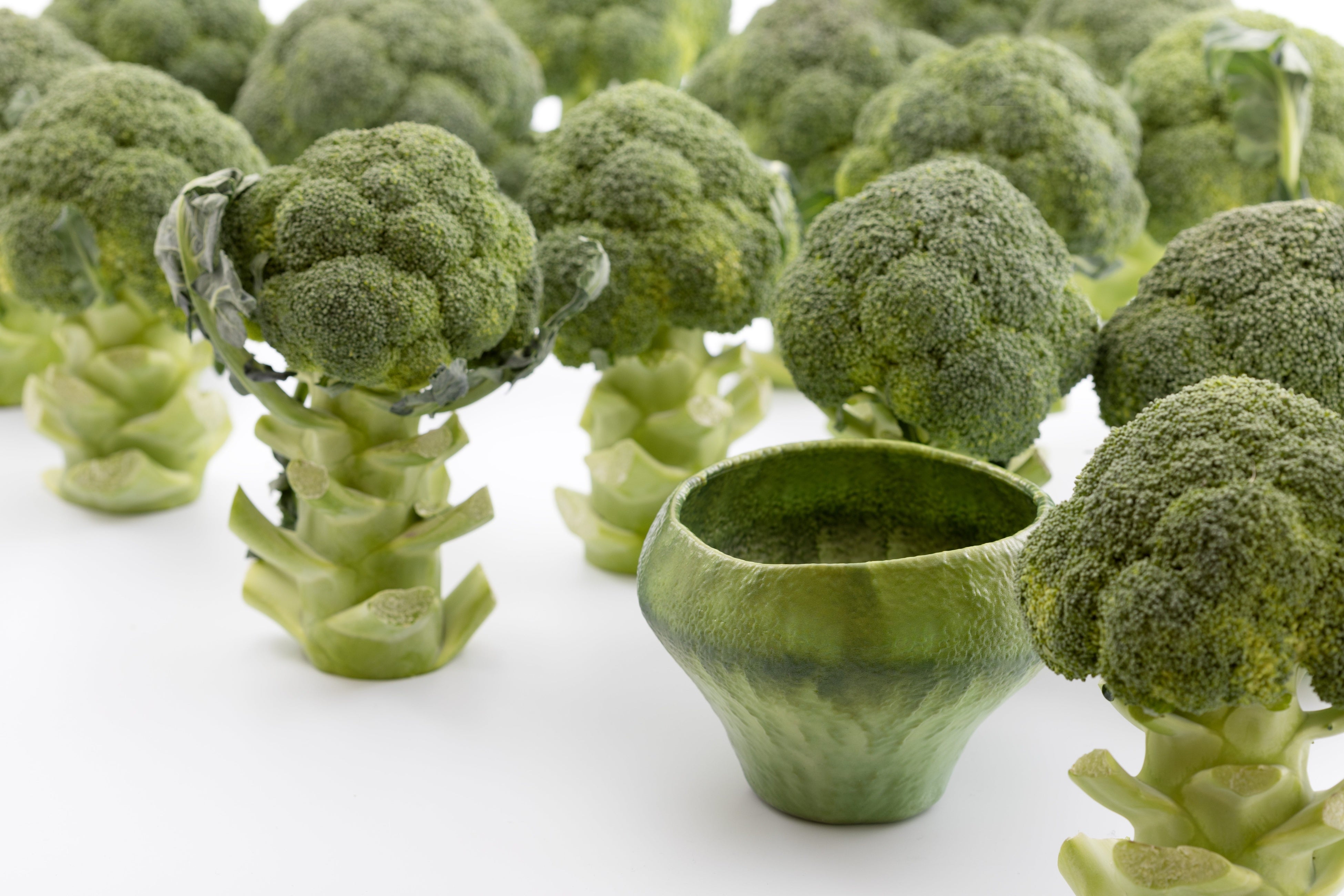 ※展示する器の一例。パパイア(上)、ブロッコリー(下)の画像をそれぞれmitate AIが見立てた。