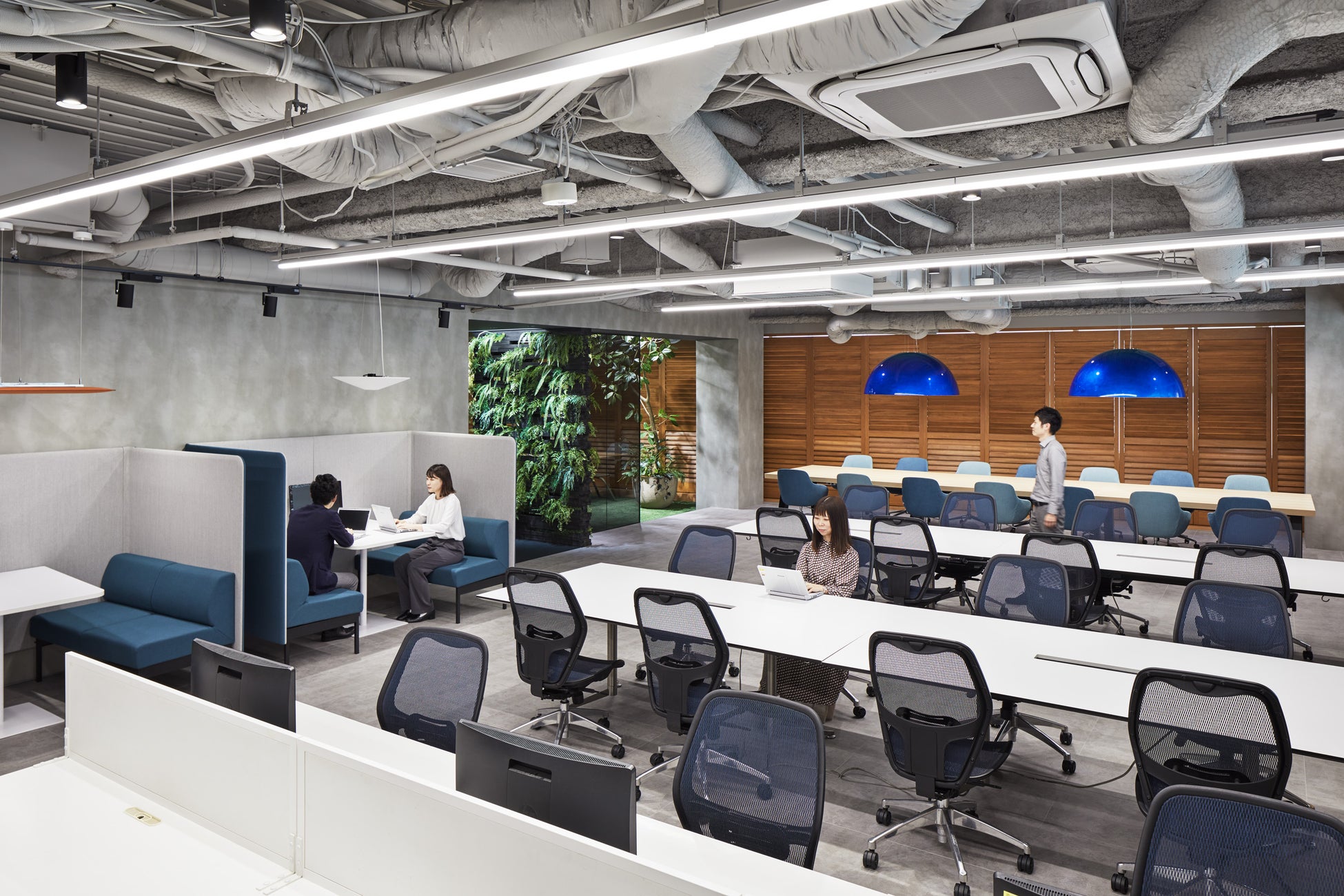 経緯とその成果:働く人が健康で、生きがいを感じられる職場空間のデザインとは?遠藤照明の企業理念である「光によって人をどこまで幸せにできるか」を検証可能なラボ的要素を取り入れ、働く人のモチベーションを高め、快適により効率よく業務遂行し生産性が高まるショールーム兼オフィス空間を実現。働く人の活動に基づきそれに相応しいゾーニングや生産性を高める働き方ができる光選定を行った。作業に疲れたり行き詰まった時や打ち合せのためにリラックスできる情緒的な光を用いた「アウトドアリラックスゾーン」においてSynca(光)・植物・自然の音と香りの要素(バイオフィリックデザイン)を採用。社員アンケートからも生産性、幸福度、創造性向上を実証することが出来た。社員が働く快適な職場環境で、エビデンスに基づいた製品をお客様にも体験いただきながら拡販しており、採用検討ご希望の声を多くいただいている。
