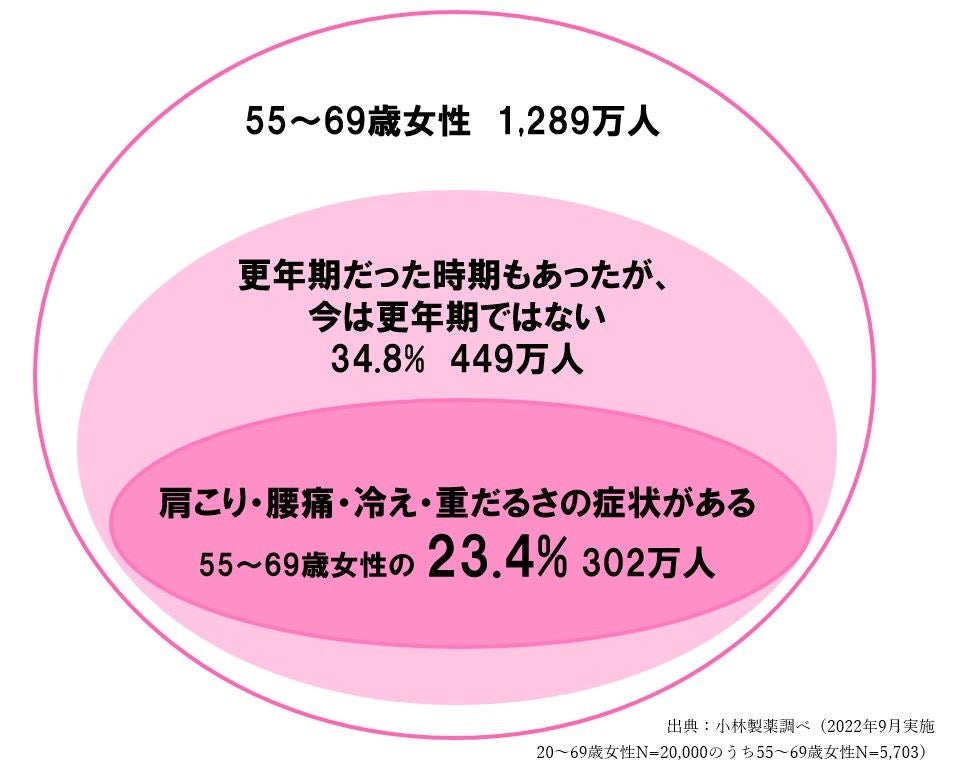 エストロゲンが欠乏すると、血流不足や骨・筋肉組織の衰えによる筋骨量の低下により、肩こりや冷えなどを引き起こします。