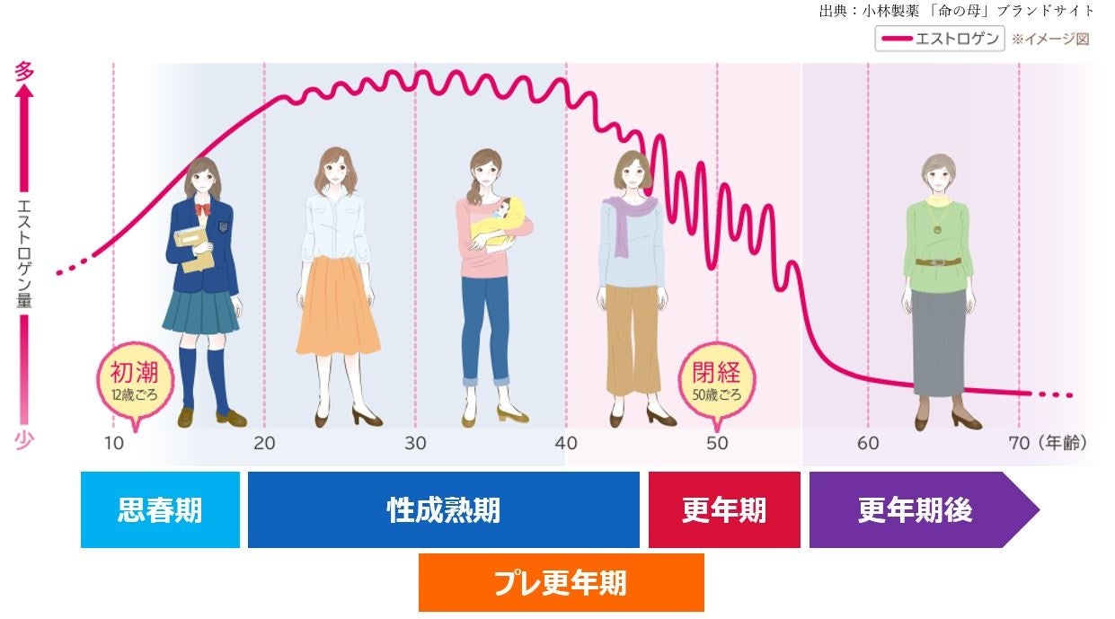 - 年齢に伴う女性ホルモン(エストロゲン量)の変化と不調