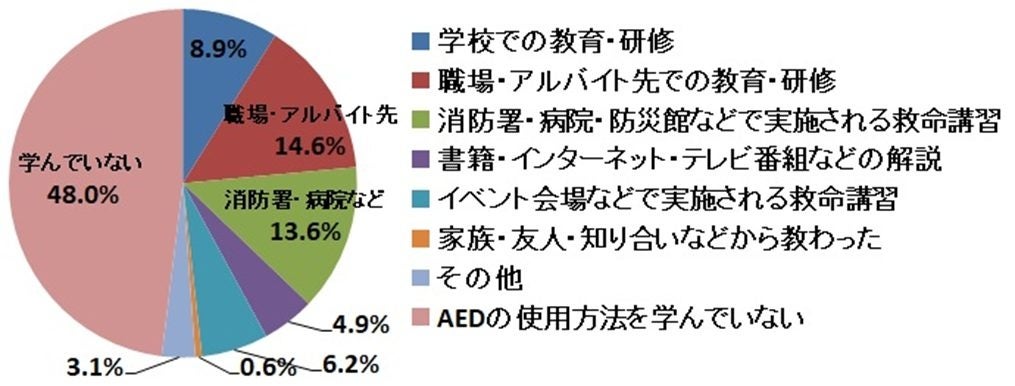 - 使用方法を学んだのは「職場」「消防署」「イベント」など