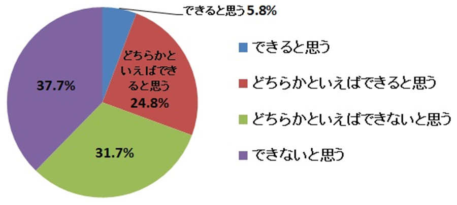 仮に目の前で人が倒れた場合、AEDを「使用できると思う」と答えた人は5.8%。「どちらかといえばできると思う」(24.8%)を合わせても30.6%にとどまりました。