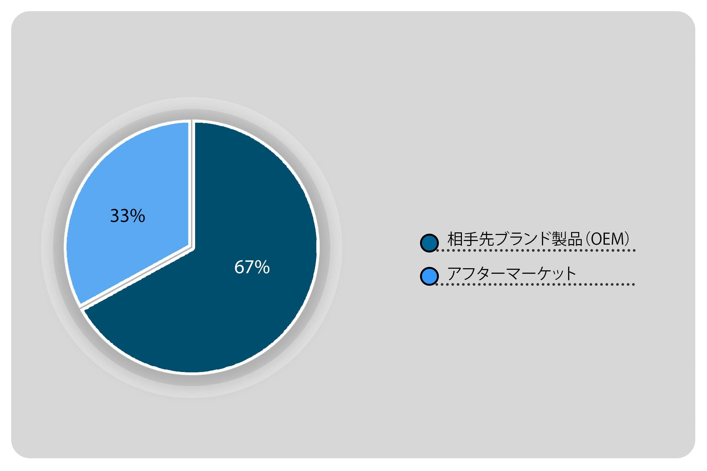 質問:自動車用エアフィルター市場で最も高いシェアを持っている販売チャネルはどれですか?