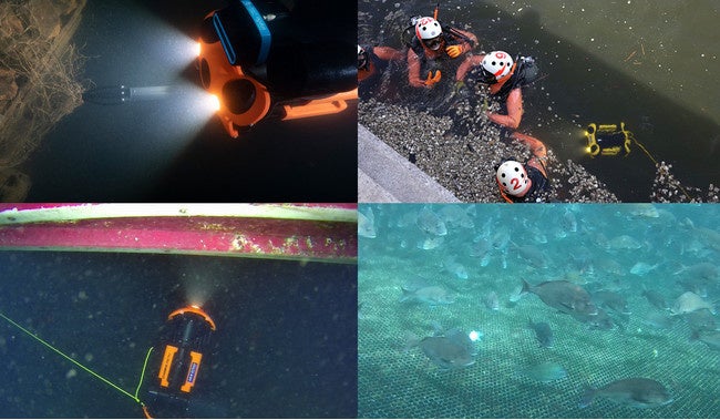 当初はホビーでの水中撮影が主流でしたが、近年は性能の向上とともに産業用途にも活用されはじめています。その分野も船体の検査や海底調査、養殖場の点検やダムの保守点検、漁港・港湾点検、貯水槽やプラントの点検など多岐にわたっています。