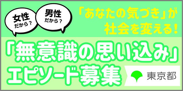 そこで、東京都では、都民の皆さんから、性別による「無意識の思い込み」に関するエピソードを募集します。今後、集まったエピソードをもとに動画も作成します。