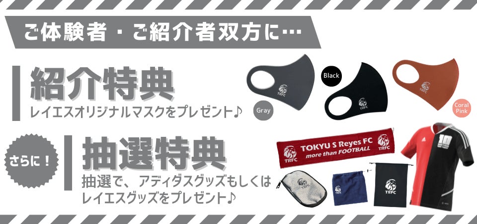 東急Sレイエス フットボールスクールでは、会員のお子様がスクールに通っていないお友達を体験にご紹介いただくと、双方に特典があるキャンペーンを実施いたします。皆様のご紹介・ご体験をお待ちしております。※当キャンペーンは蹴祭対象キャンペーンです。 ※当キャンペーンは蹴祭対象キャンペーンです。