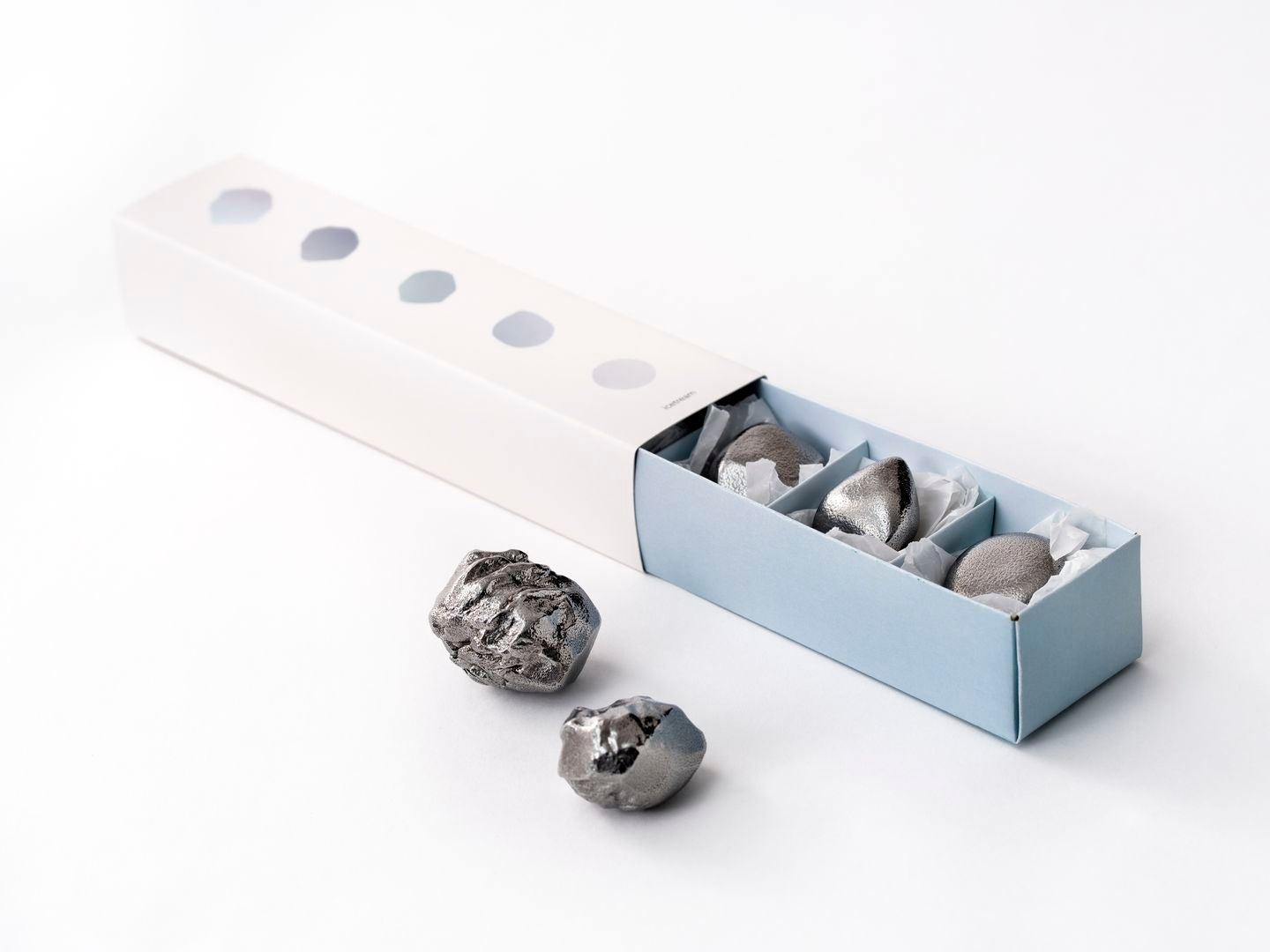 自然を感じたいと、旅した先でその土地の名水を飲む。その湧き水は、流れをつくり、上流から下流にかけて豊かな自然をはぐくむ。その流れを支える石は、流されながら、角を削り、丸くなる。石にとっても流れという旅をしている。これは石の上流から下流までの、形状変化になぞらえたアイスキューブ。帰路につき、旅先の自然に思いを寄せながら飲む水も、いつもよりきっと美味しい。