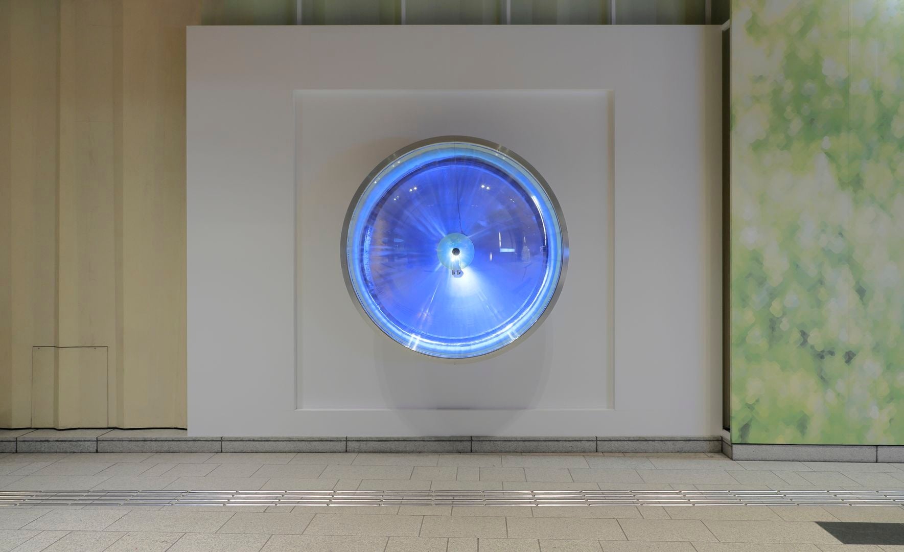 空という漢字は「穴」に由来し、太古の人間は頭上に広がる大きなからっぽの中から神々が舞い降り、雲や雷が出てきては消えてゆくと考えていました。無と有の両方の側面を持つ空は、いつの時代も人間にとって五感を惑わす美しいものです。この作品は、空の原理を応用した特殊なガラスが生む色の移ろいを、パラボラアンテナで映し取っています。さまざまな人が行き交う東京ミッドタウンにおいて、いま鑑賞してもらいたい作品です。