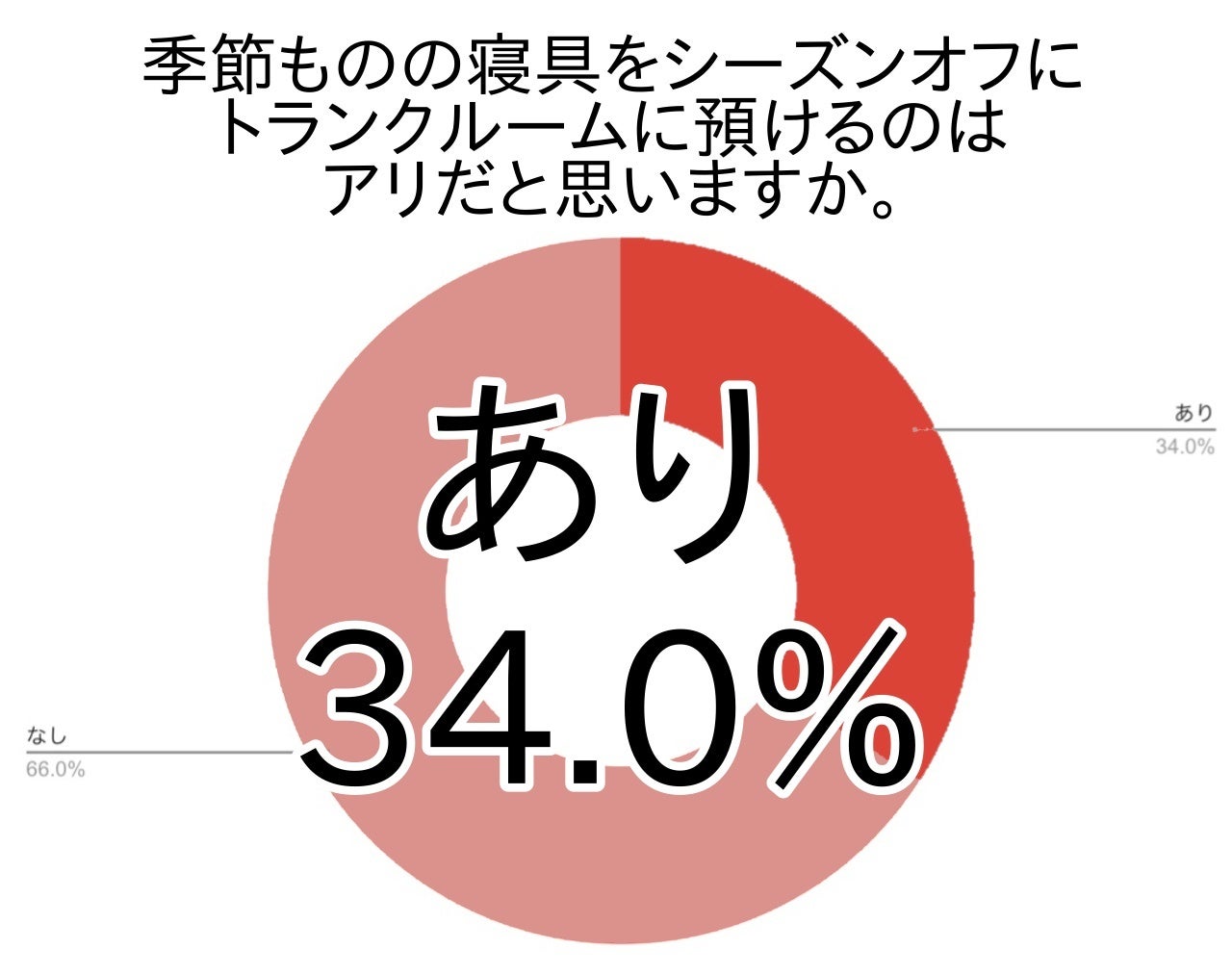 アンケートでは34.0%の方がシーズンオフの寝具の収納にトランクルームを利用する方法を良いと思うと答えました。