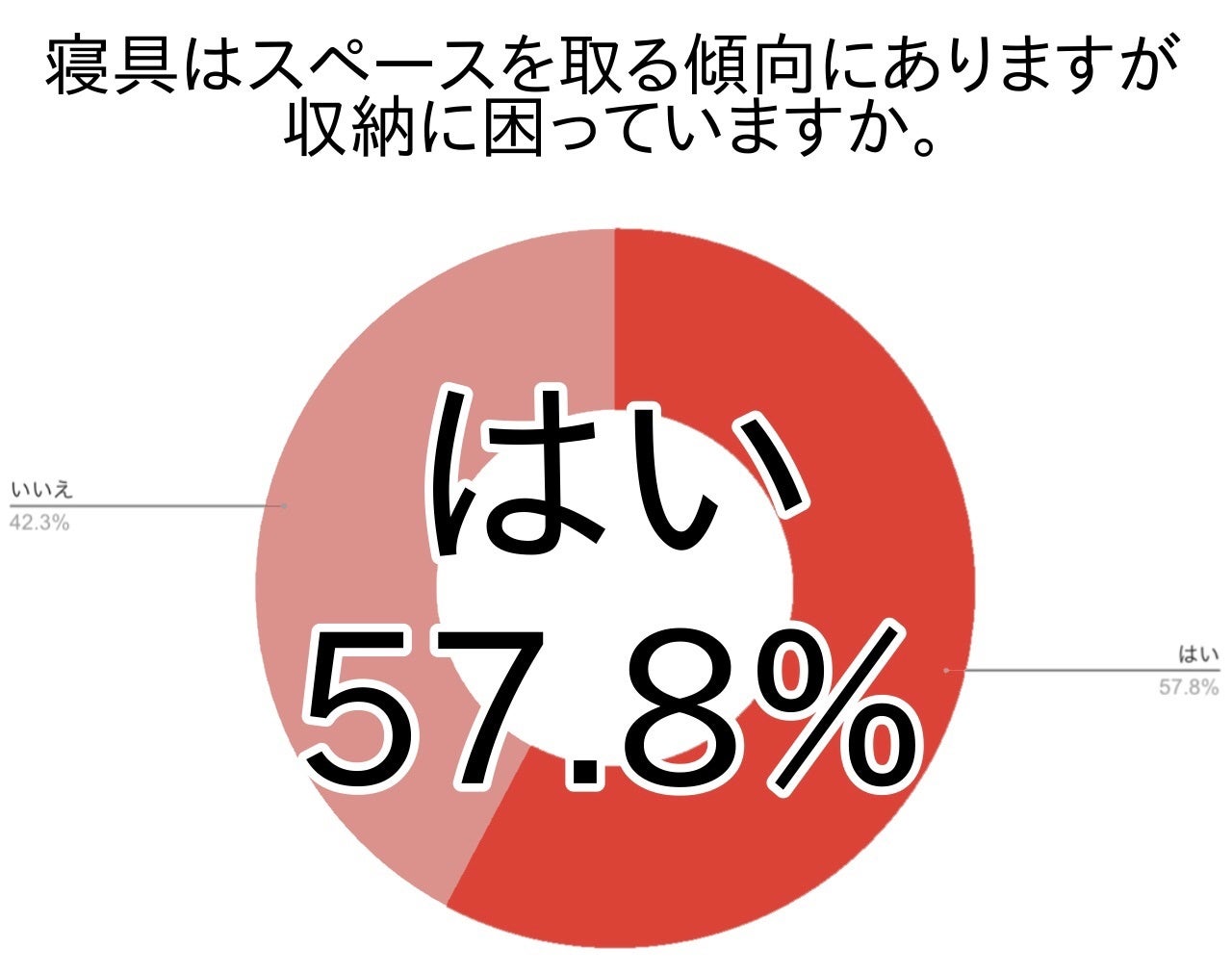約6割弱(57.8%)が寝具の収納に困っていると答えました。