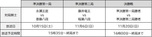 準決勝第一局生中継「ABEMA」URL https://abema.tv/channels/shogi/slots/B6tw6nNVAKeHD1