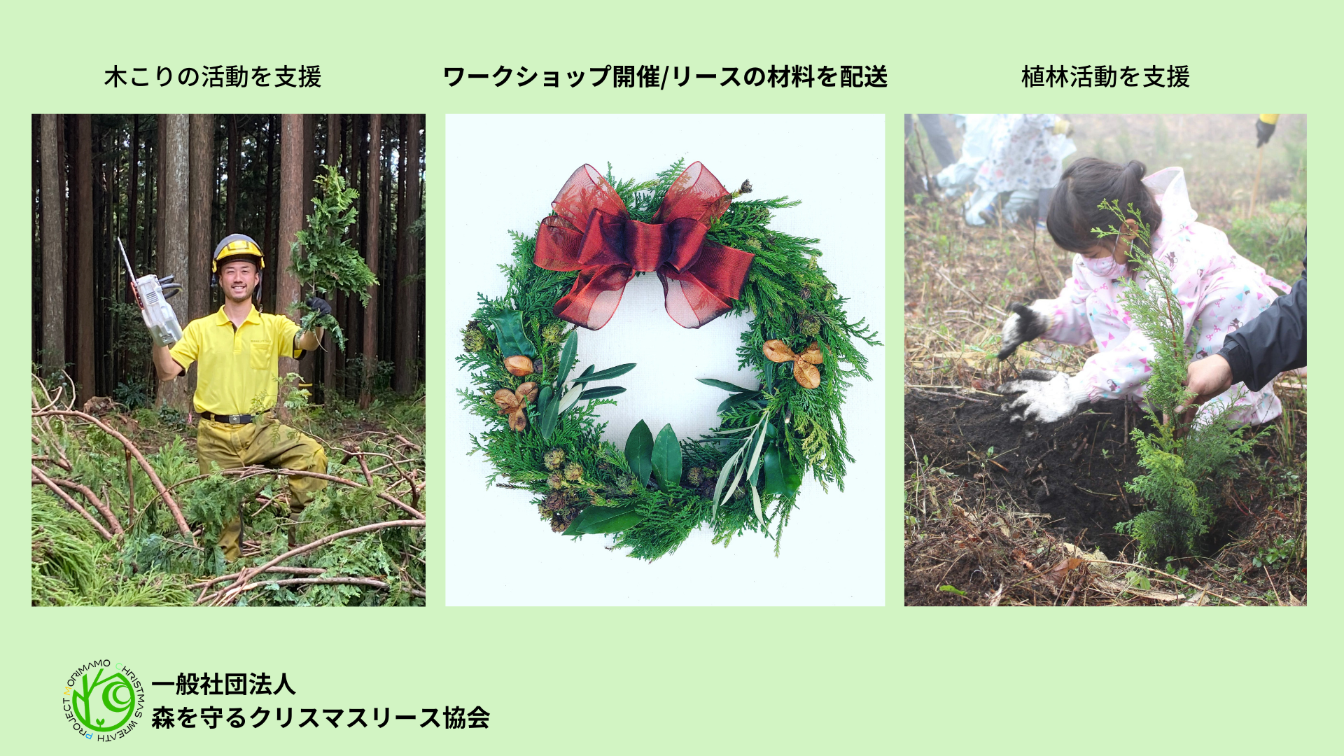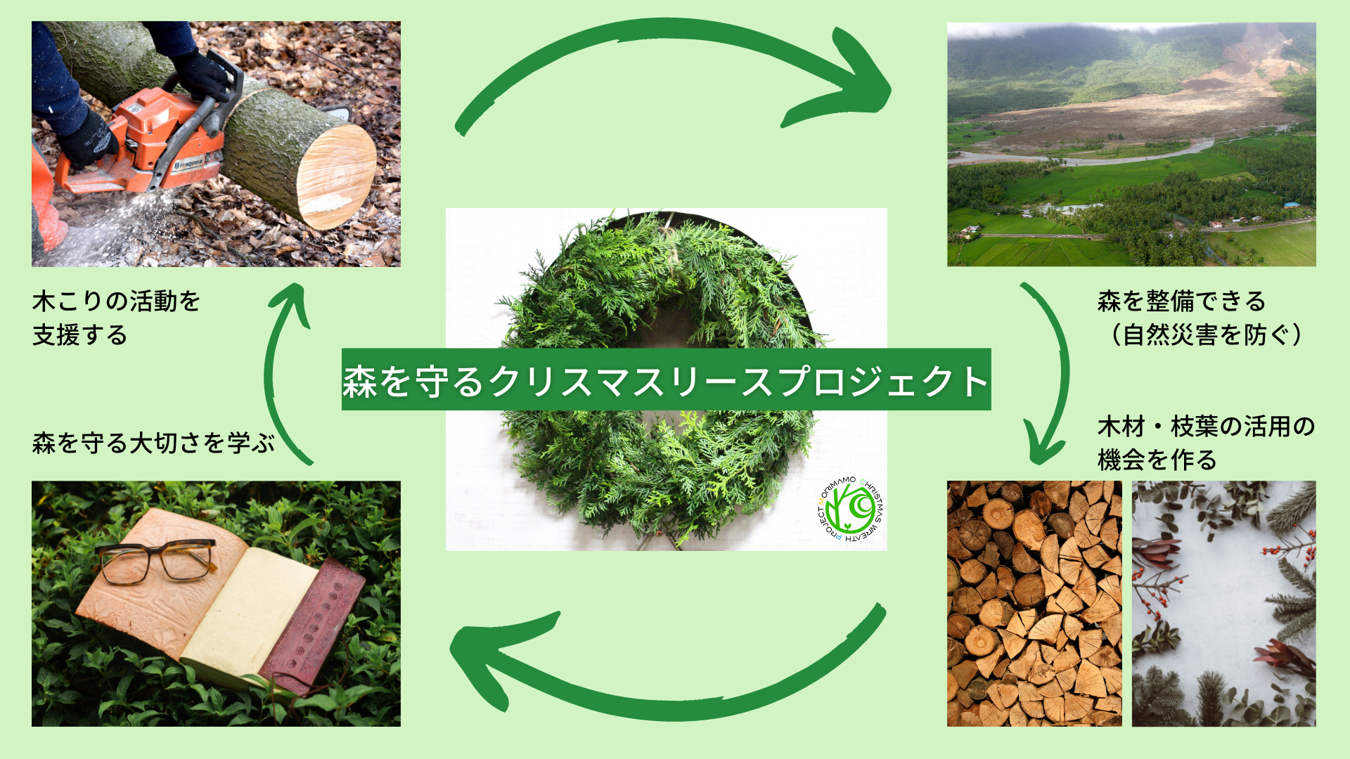 誰もが参加できるSDGsのプログラムとして、「森を守るためクリスマスリースプロジェクト」を昨年より立ち上げました。