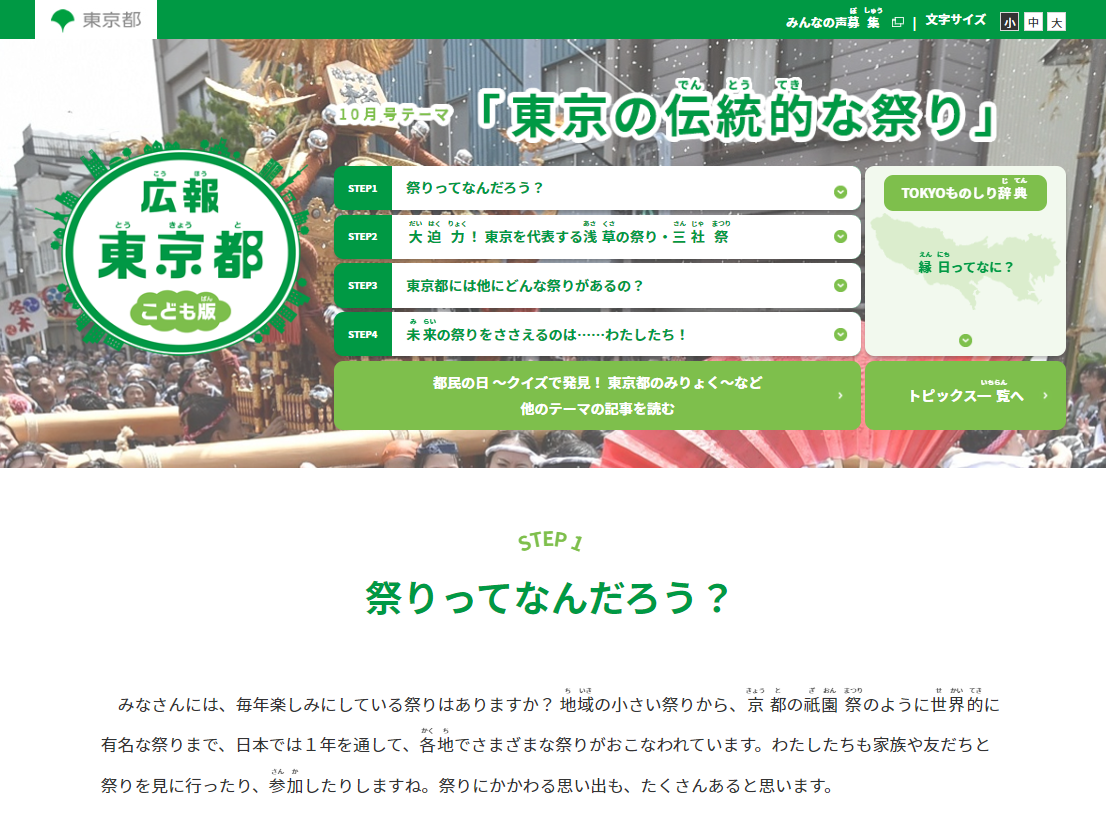 東京都では、子供たちの東京に関する知識を深め都政への理解を促進していく取組として、今年度より、毎月1回、「広報東京都こども版」を配信しています。