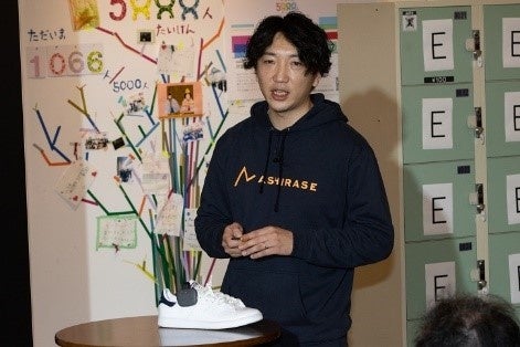 【事業案(登壇内容)】 靴に挿入するデバイスで行き先を知らせる歩行ナビゲーションシステム。音声ではなく振動で情報を伝えるナビゲーション「あしらせ」を使用して充実した旅・移動ができる仕組みを発表。