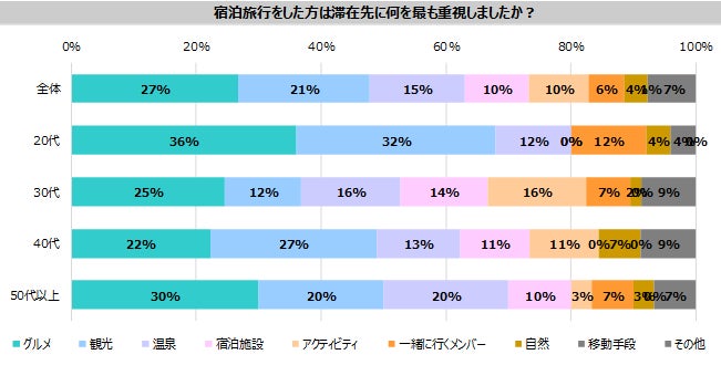 4. 宿泊旅行は国内。滞在先はグルメや観光を重視、91%が満足。