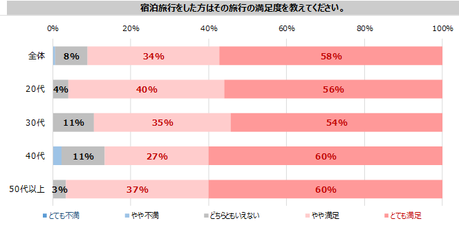 4. 宿泊旅行は国内。滞在先はグルメや観光を重視、91%が満足。