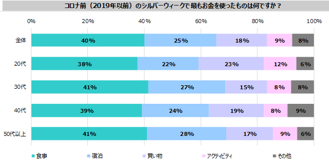 2. 過ごす人は同居家族で、最もお金を使ったものは食事。コロナ前と比べ宿泊費用は減少。