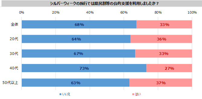 このシルバーウィークで県民割などの公的支援を利用した方は32%で、来年のシルバーウィークは旅行に行きたいと65%の方が回答しています。