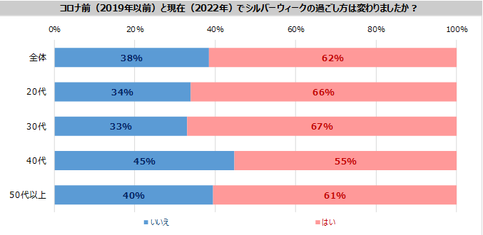 今回の調査で多くの方がコロナ前と現在でのシルバーウィークの過ごし方が変わったと感じていることがわかりました。県民割などを使った方は33%でしたが、そのうち62%の方はそのような支援がなくても旅行に行ったと回答しています。一方、使わなかった方の理由は「利用方法がわかりにくかった」というコメントが多くあり、使用することへのハードルを感じているようです。
