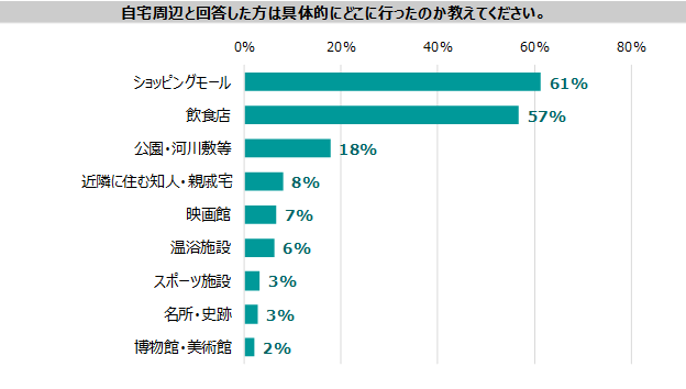 3. 76%は日帰り。自宅から近いショッピングモールで過ごした。