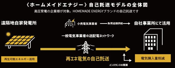 - 自己託送によるオフサイト型自家消費ソーラー概略図と標準オフサイト型との比較