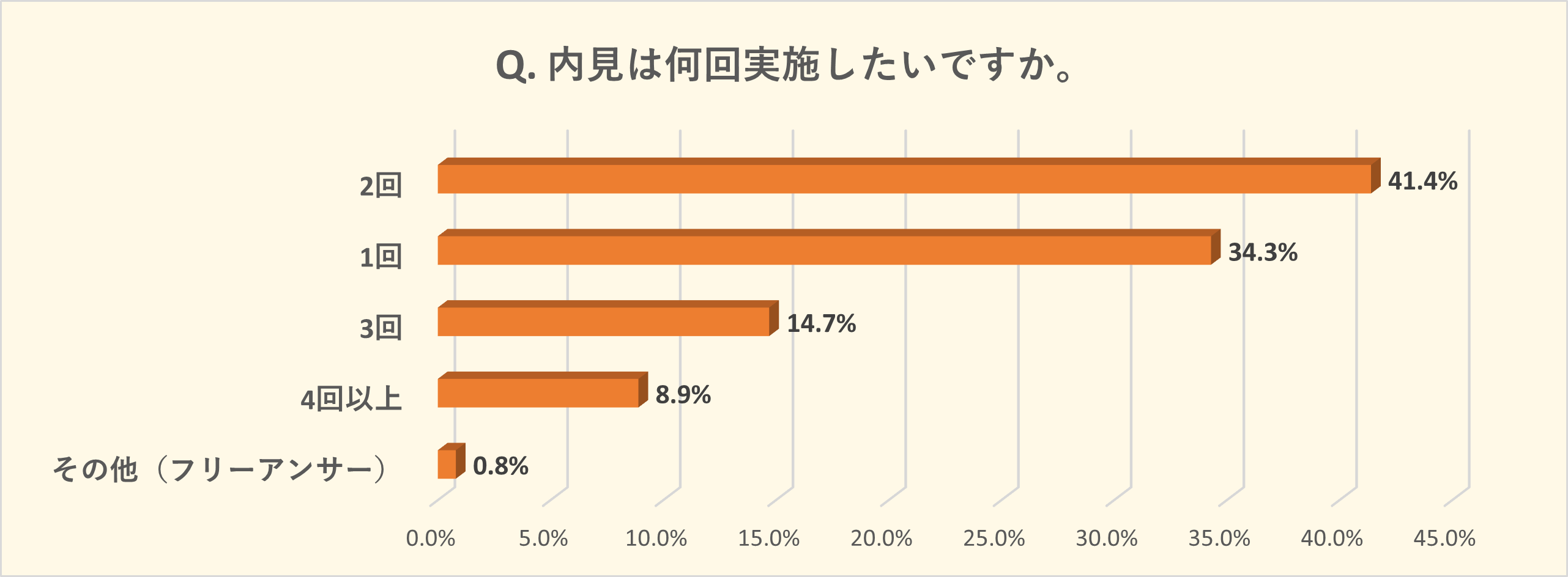 ・治安の良さが分かるからです。(30代女性)最後に、希望する内見回数について調査いたしました。
