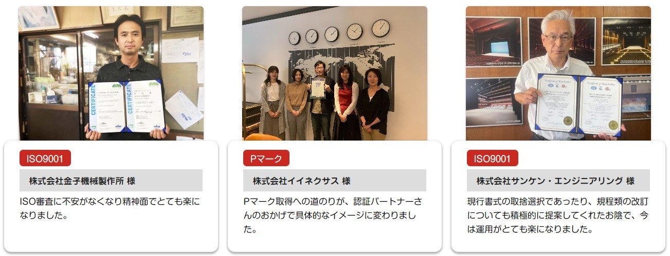 ISO/Pマークの認定パートナーとして、契約継続率94%以上のお客様の中からいただいた嬉しいお声