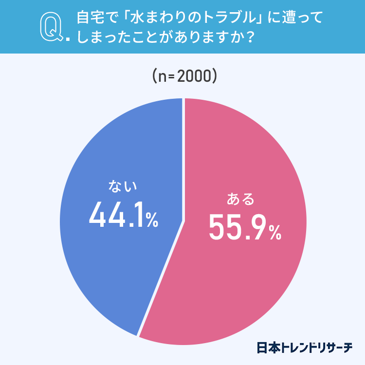 まずは、全国の男女2000名の方に、自宅で「水まわりのトラブル」に遭ってしまったことがあるか聞きました。