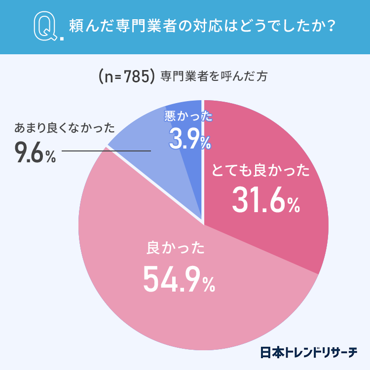 頼んだ専門業者の対応はどうだったかについても聞きました。