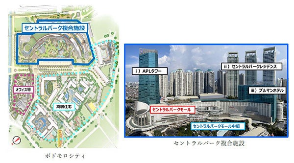 本施設は、インドネシアの大手不動産開発会社であるAgung Podomoro Group(アグン ポドモログループ)のPT Agung Podomoro Land,Tbk(アグン ポドモロ ランド)(以下、「APL社」)により開発された大規模複合開発エリア『ポドモロシティ』の中にあります。同エリアは、セントラルパーク複合施設・高層住宅・オフィス等からなり、そのうち同複合施設は、今回取得した本施設のほか、APLタワー(オフィス)・セントラルパークレジデンス(高層住宅) ・プルマンホテルで構成されています。