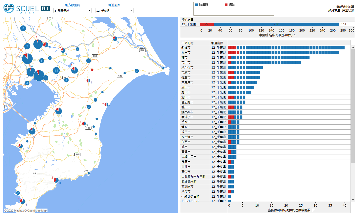・市区町村別、病院・診療所ごとのの届出医療機関数(機能強化加算)動的コンテンツ