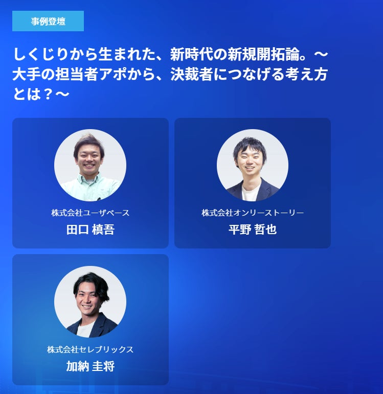 今回、オンリーストーリーはDay.2の事例登壇として「しくじりから生まれた、新時代の新規開拓論。~大手の担当者アポから、決裁者につながる考え方とは?~」に登壇いたします。