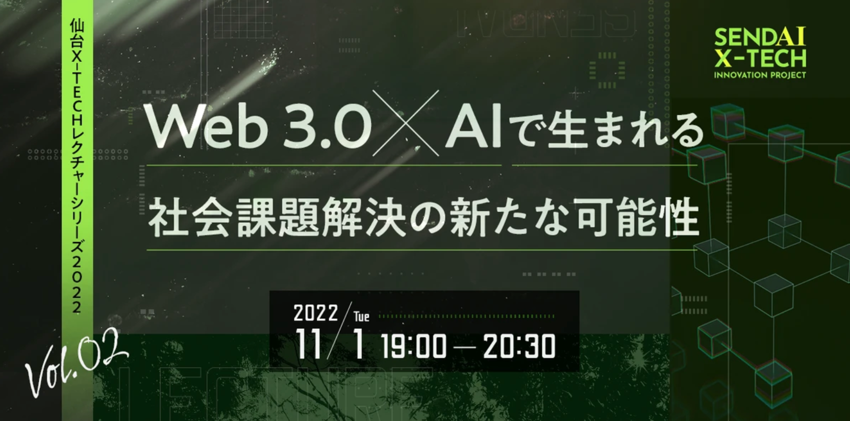 講演タイトル :仙台X-TECHレクチャーシリーズ2022 Vol.2 Web 3.0 × AIで生まれる