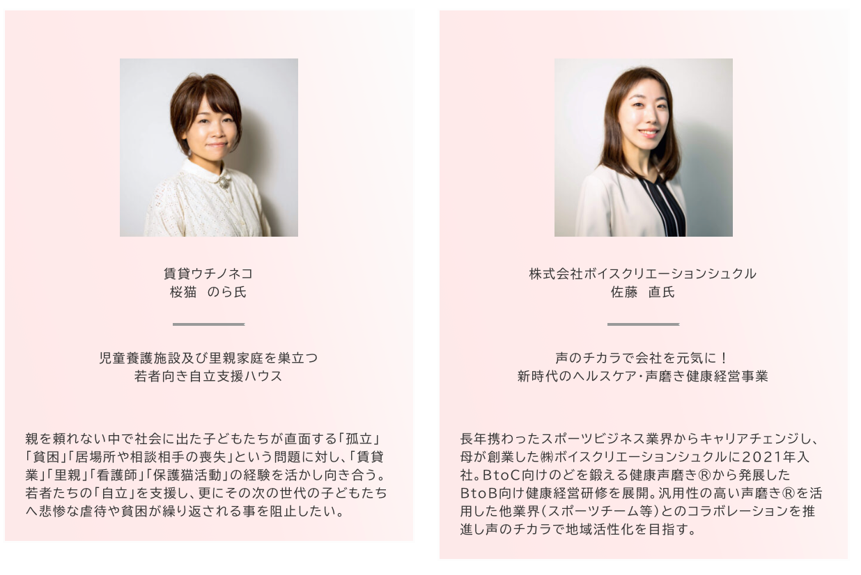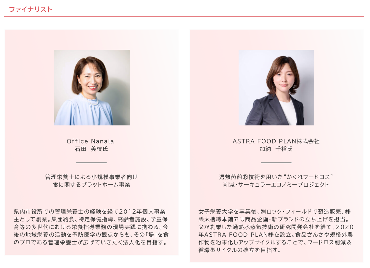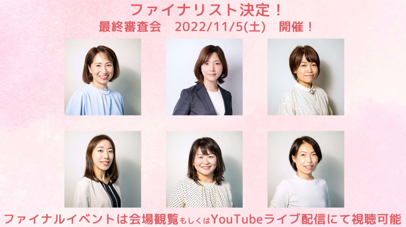 11月5日(土)13:30から開催のファイナルイベント(最終審査会)で1次審査、2次審査を勝ち抜いた6名の女性起業家が、最終プレゼンテーションを行います。