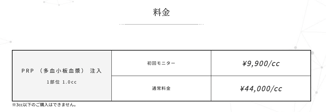 施術部位にもよりますがおよそ15ml程度の採血を行います。