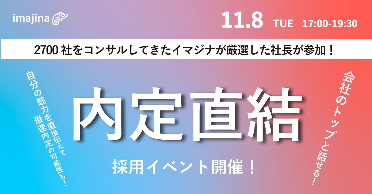 11月8日(火)の合同就活イベントでは、コンサル・IT・インフラ・メーカーなどの優良企業が集まります。どの企業からも代表や役員が登壇するため、企業のトップに想いを聞いたり自分をアピールしたりするまたとないチャンスです!