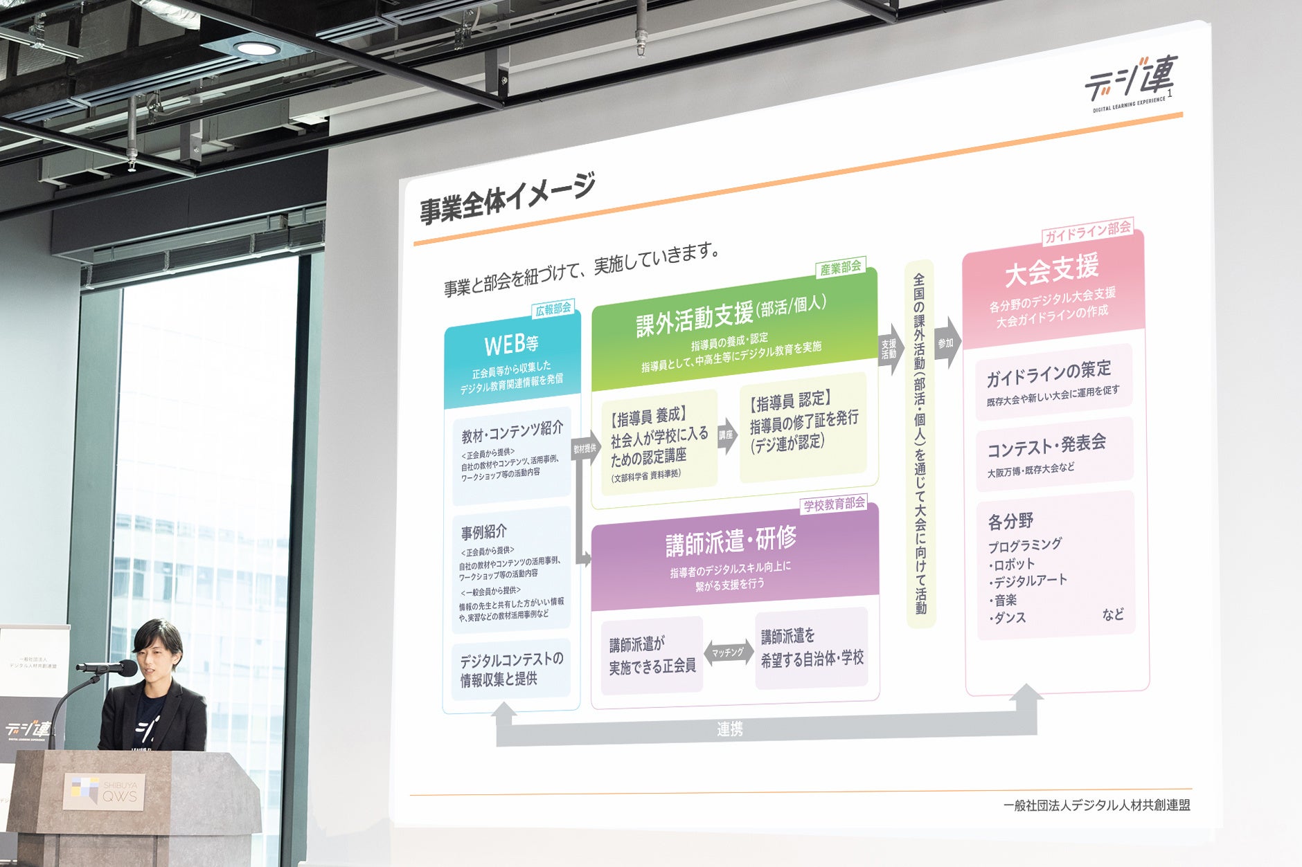 経済産業省「デジタル関連部活支援の在り方に関する検討会」が取りまとめた「Society5.0を見据えた中高生等のデジタル関連活動支援の在り方提言」(2022.3.31)の社会実装を担う団体として2022年7月5日に「一般社団法人デジタル人材共創連盟(以下、デジ連)」が設立。