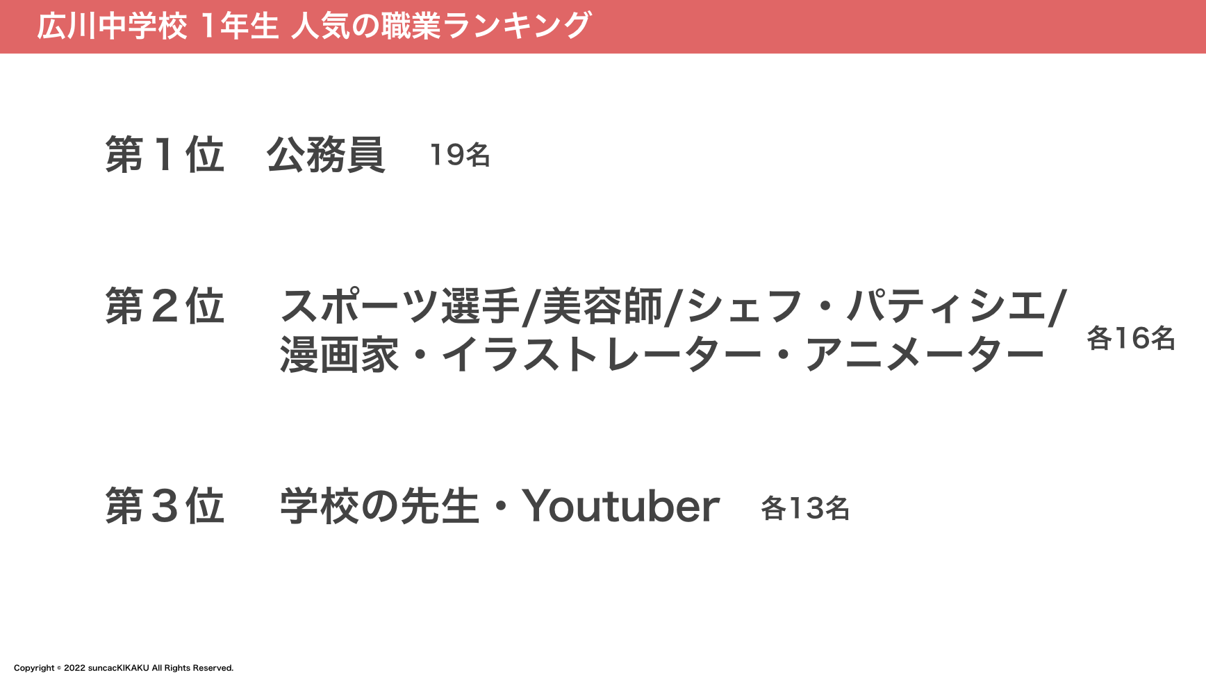 このようなランキングがキャリア教育実施後にどのように変化するのかまで追う予定です。