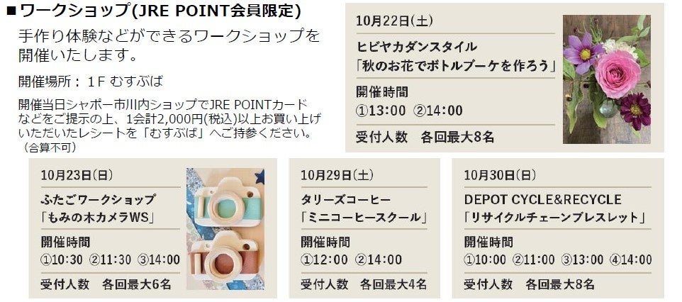 また、10月中にシャポー市川各ショップにてJRE POINTカードを新規で作成いただいた方に、もれなくJRE POINT100ポイントをプレゼント。