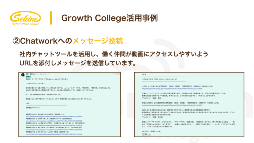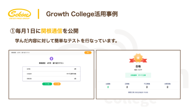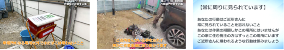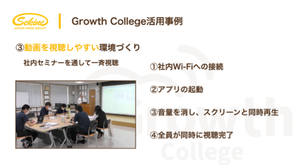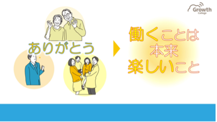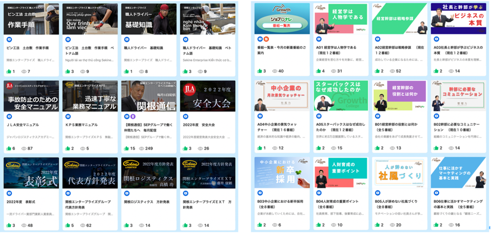 これらの教育動画を全社員がスマホやパソコンから視聴し共通の学びを得ている。集合研修などでも動画視聴後にはディスカッションを行なったり、社内の問題を共有する機会にしている。