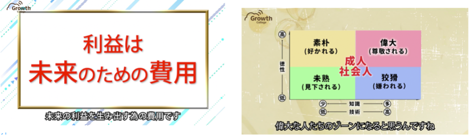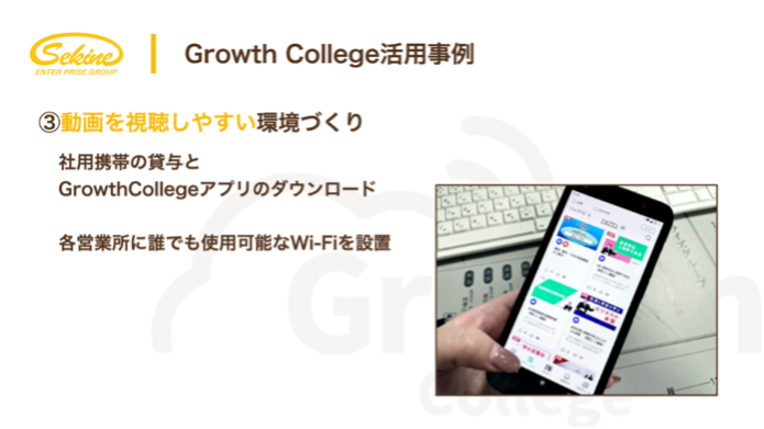 建築資材の扱い方や工具の使い方、お客様の現場での対応方法、建築に関する知識や技術、一般的な経営知識などは、『Growth College』(販売:株式会社日本創造教育研究所)というeラーニングシステムを使って動画で学んでもらっている。ドライバーは、エッセンシャルワーカーであるため、仕事に対しての職業観や倫理観も学ぶ必要がある。このシステムを使うと、自社で用意した動画に加えて、社員やドライバーが学んで欲しいコンテンツも豊富にそろっているので、リスキリングには最適である。リスキリングによって、生産性の高い人材を育成している。