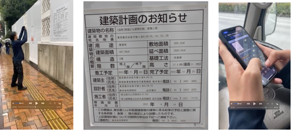 (下の写真は自社で作った動画(左)とシステムで用意されている動画の一部)