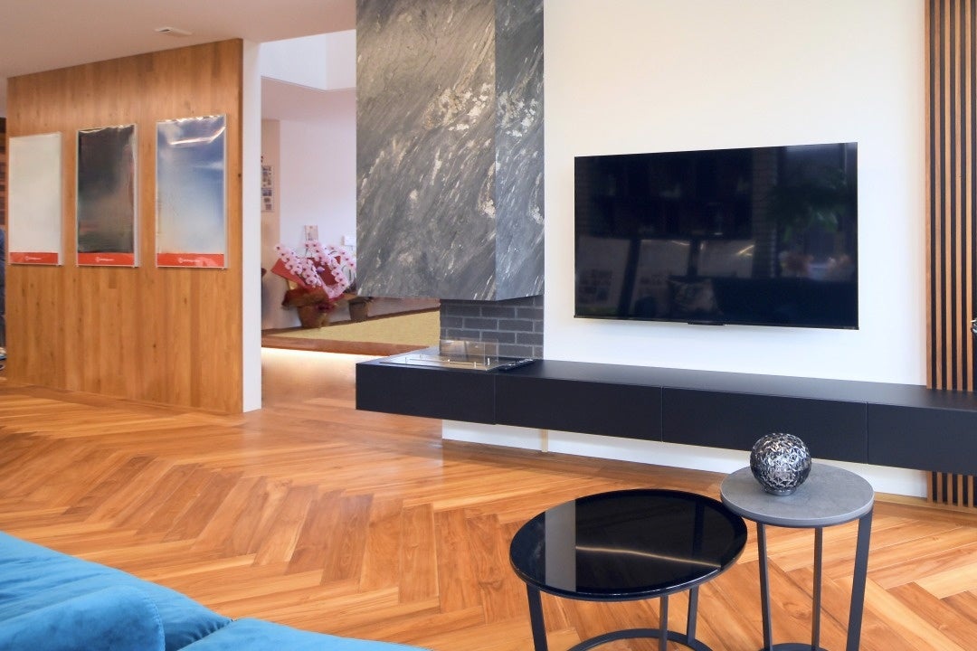 本展示場では、CLTハイブリッド構法の大きな特徴である、CLTの木をそのまま見せる『現し仕上げ』をリビングダイニングに施しております。
