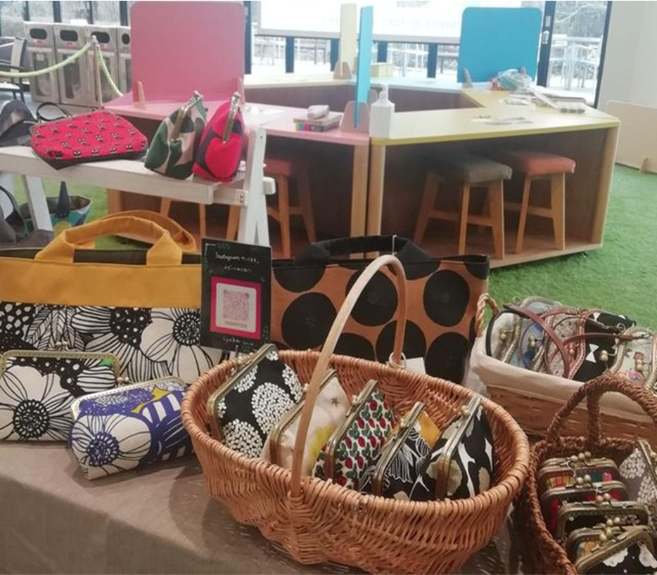 がま口ポーチやがま口バック、トートバッグを中心に布小物を製作・販売。