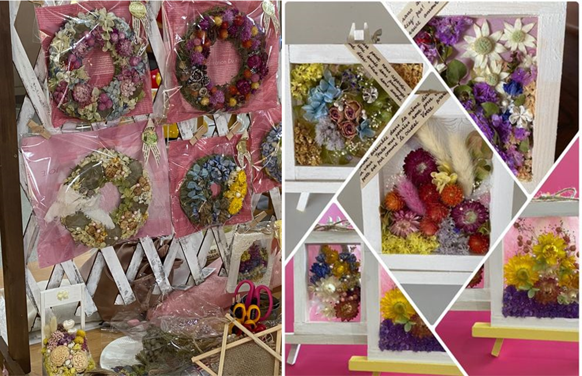 ドライフラワーやプリザーブドフラワーなどのリースなどを販売。