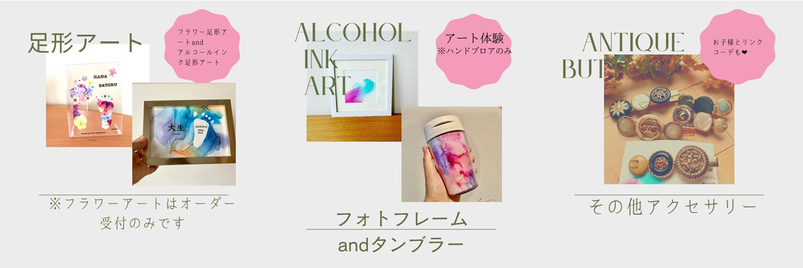アルコールインクアートや押し花を使った赤ちゃんの足形アートをメインに活動。