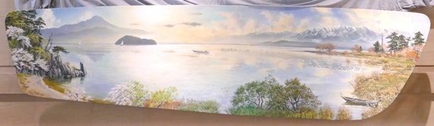 横幅約570cm x縦幅約160cmの曲面油彩画で「琵琶湖の四季」をテーマに北湖と南湖、朝と夕、四季折々といった琵琶湖の美しい風景を、1枚の絵に盛り込んだ構図となっている。