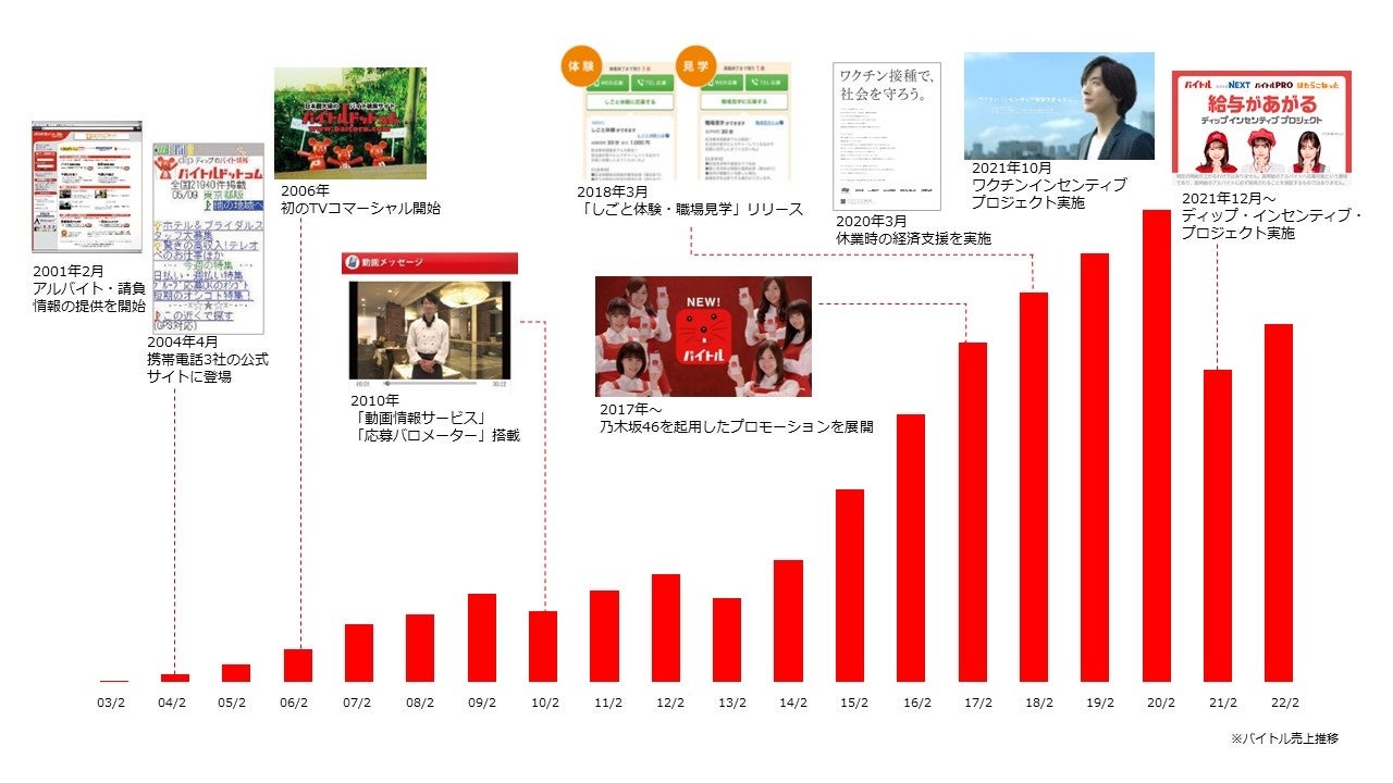 支えてくださった皆様へ感謝をお伝えするとともに、この先も働く人を応援していく決意をこめ、明日10月22日(土)に実施する「バイトル学園祭2022」(※1)を皮切りに20周年を記念したさまざまな取り組みを実施していく予定です。この先も「バイトル」はユーザーファーストなサービスを追求し、誰もが働く喜びと幸せを感じられる社会の実現を目指してまいります。
