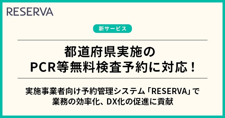 - PCR等無料検査の来店・来場管理がかんたんにできる「RESERVA」